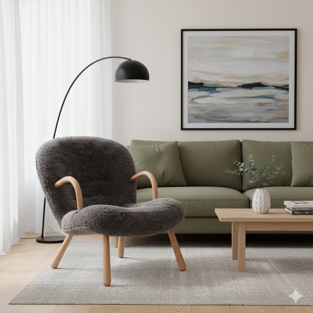 The Clam Chair draws its essence from classic Danish design, embodying the spirit of the 1940s era. Its continued popularity today is a testament to its enduring aesthetic, ergonomic finesse, and impeccable craftsmanship. Characterized by its welcoming curves and sumptuous upholstery, the Clam Chair serves as the ideal retreat at the close of a tiring day. Meticulously crafted with a hardwood frame and delicate tufting, this chair epitomizes durability and is poised to grace interiors for many decades to come.