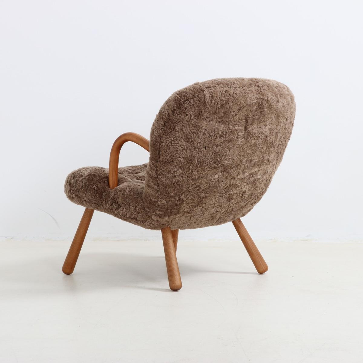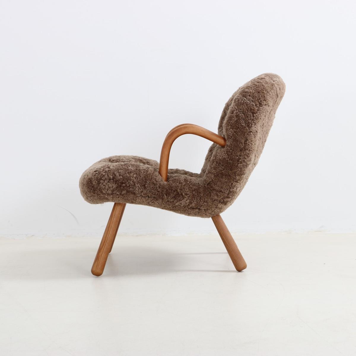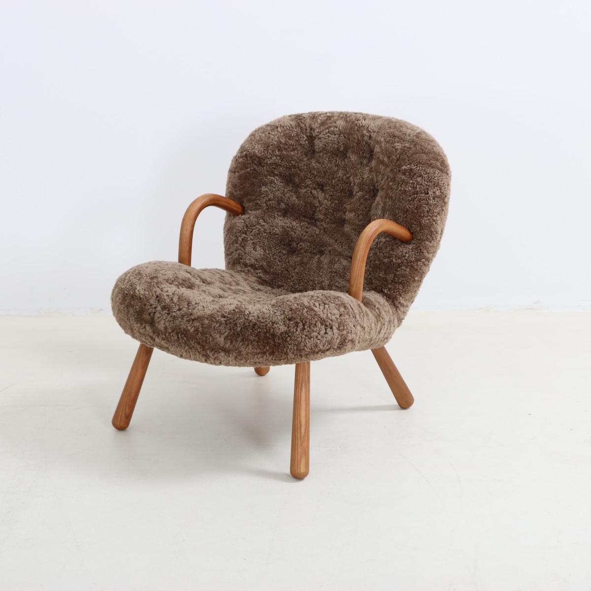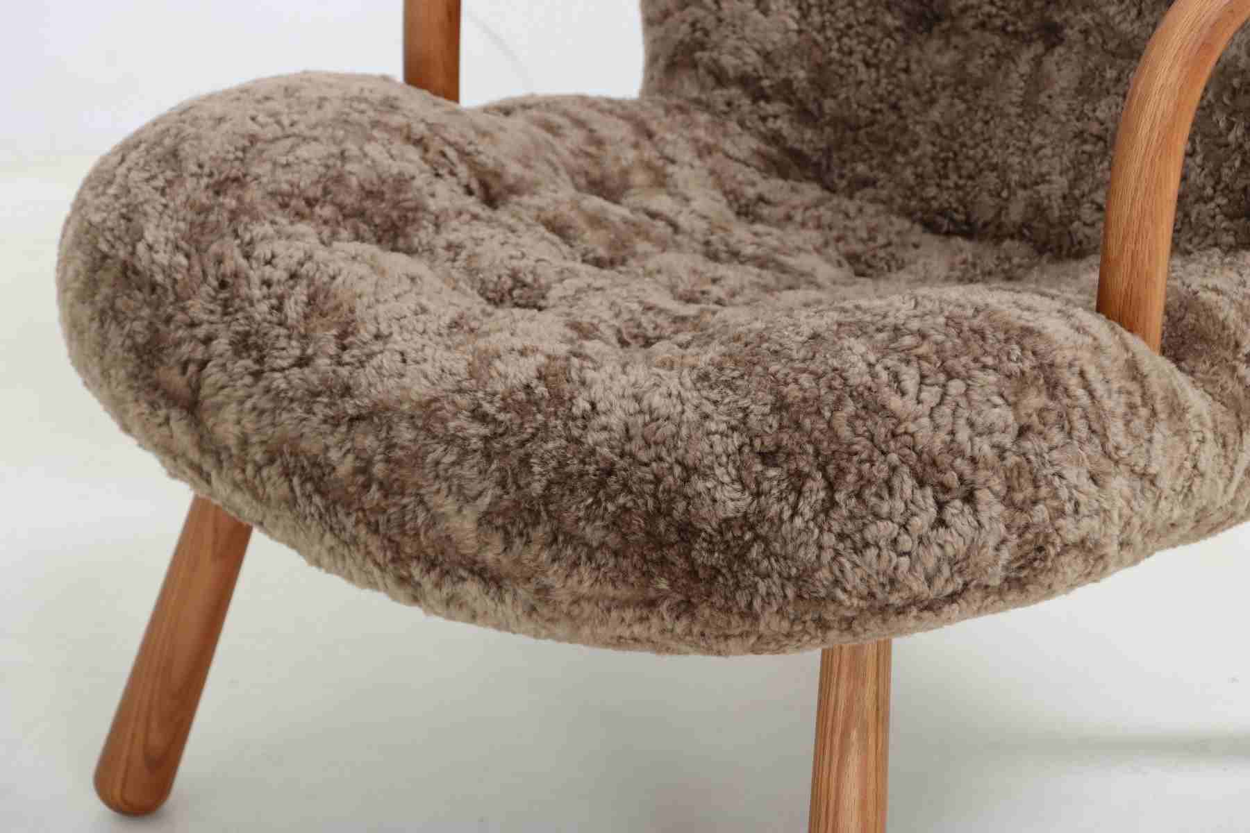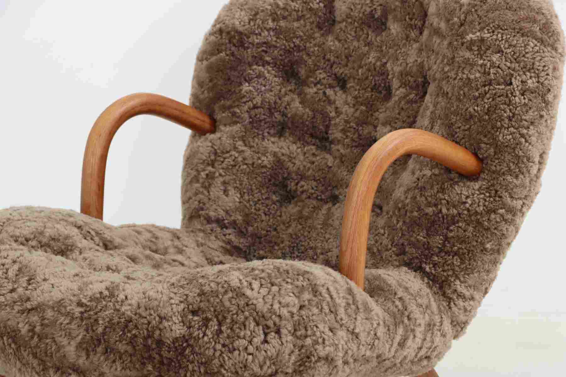 Arctander Clam Chair Taupe Brown Real Sheepskin